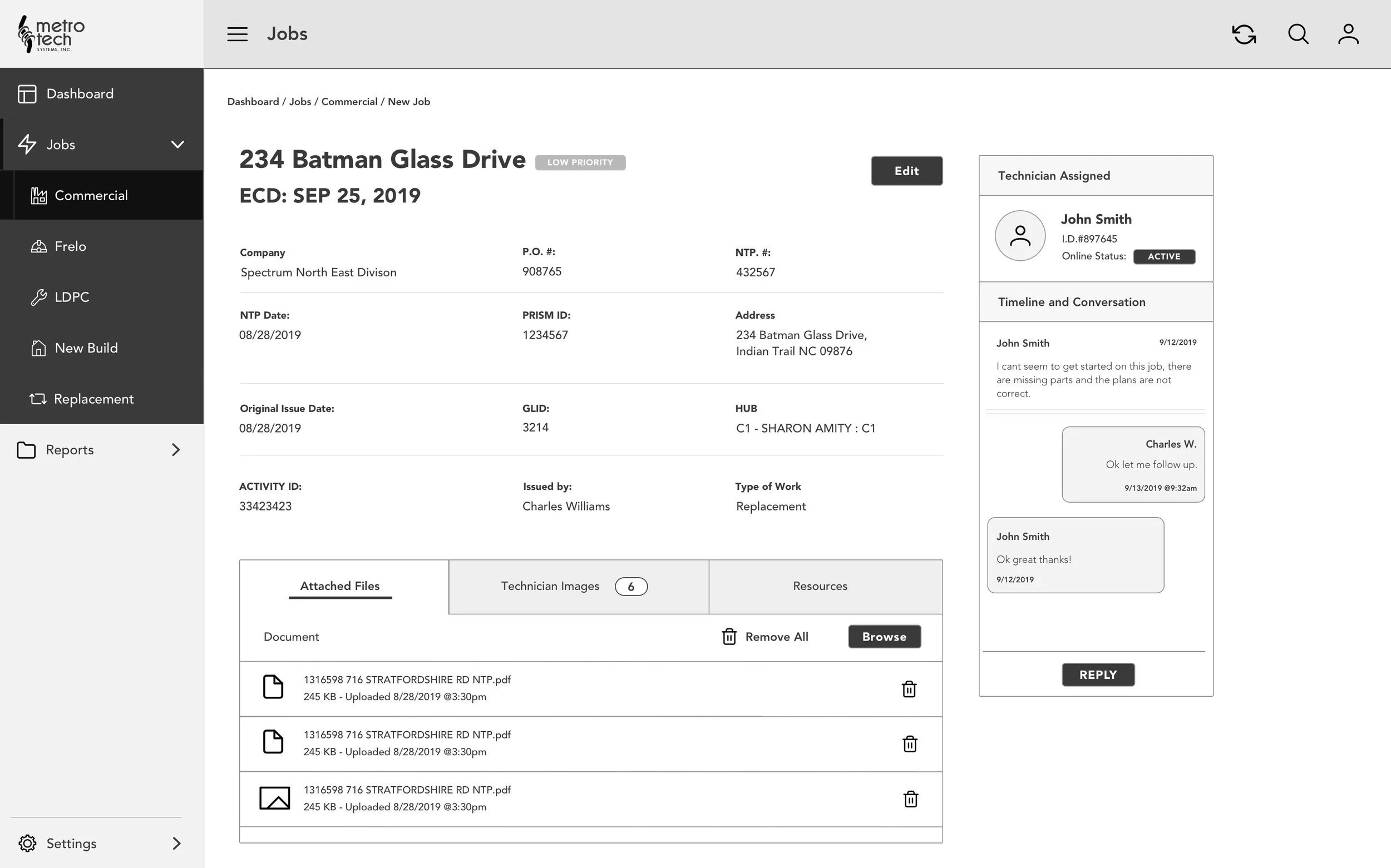Metro Tech is a cable wiring company that services both residential and commercial properties. They faced challenges in managing their projects efficiently. My role was to develop a fully customized application that would enable them to manage, track, and assign projects on a daily basis.